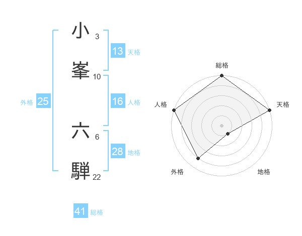 小峯 六騨さんの天格は13画の5点!