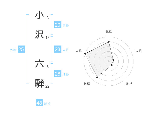小沢 六騨さんの外格は25画の4点!
