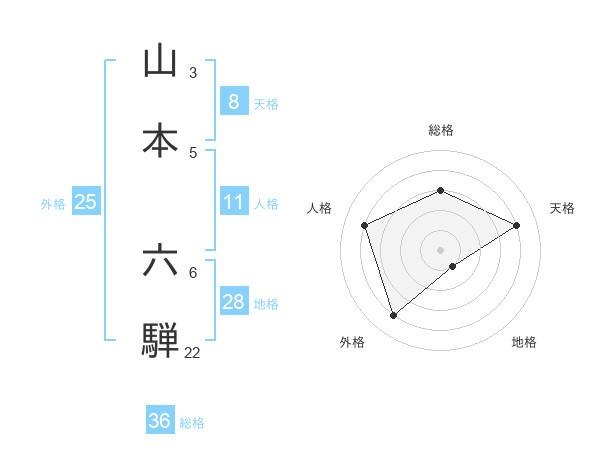 山本 六騨さんの天格は8画の4点!