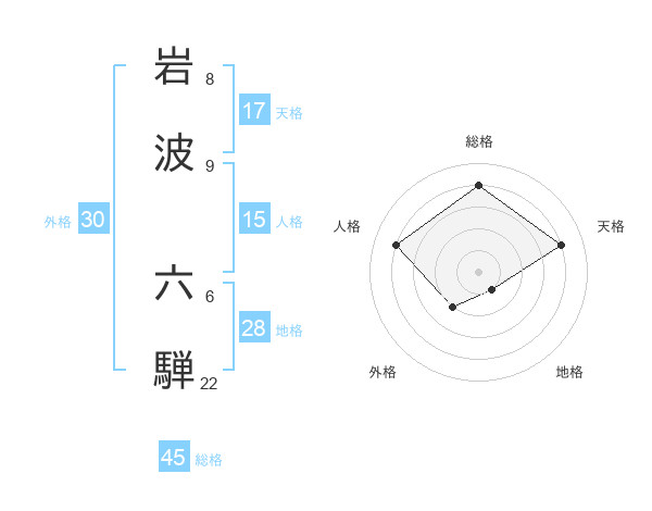 岩波 六騨さんの総格は45画の4点!