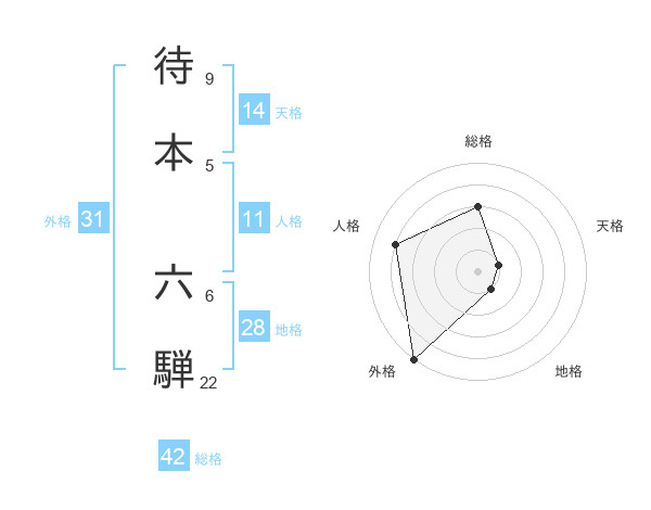 待本 六騨さんの外格は31画の5点!
