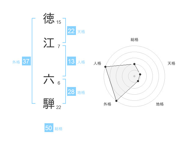 徳江 六騨さんの総格は50画の2点!