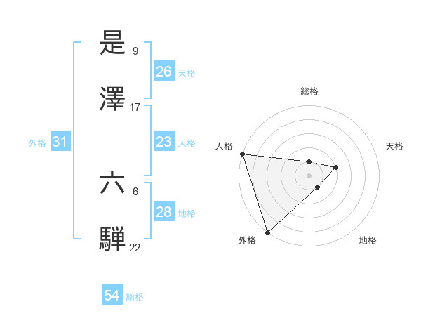 是澤 六騨さんの総格は54画の1点!