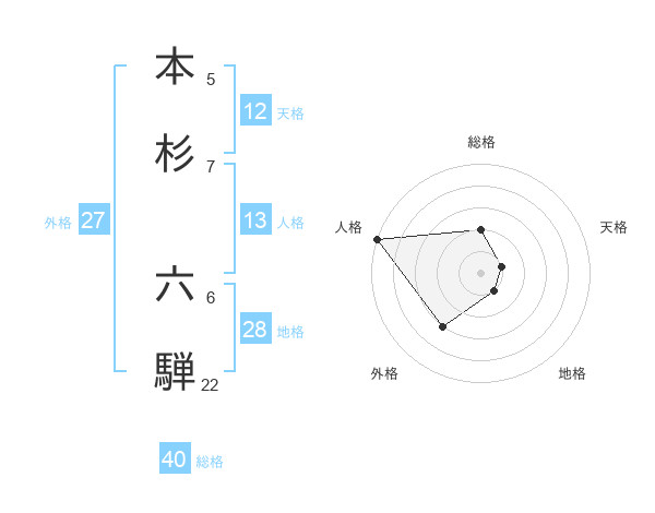 本杉 六騨さんを姓名の画数から五運を鑑定