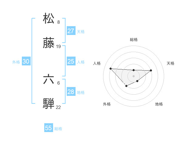 松藤 六騨さんを姓名の画数から五運を鑑定