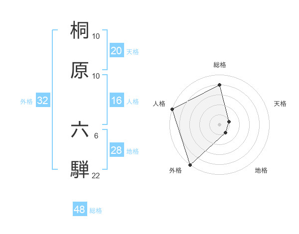 桐原 六騨さんを姓名の画数から五運を鑑定