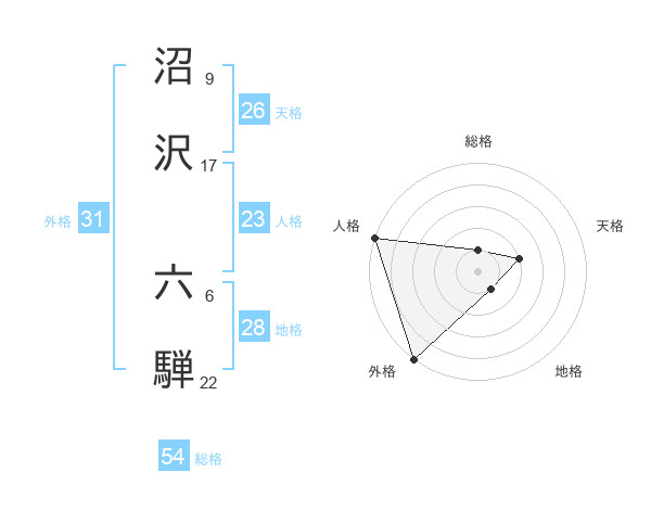 沼沢 六騨さんを姓名の画数から五運を鑑定