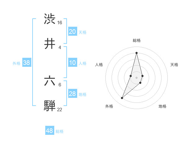 渋井 六騨さんを姓名の画数から五運を鑑定