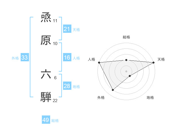 焏原 六騨さんの総格は49画の2点!