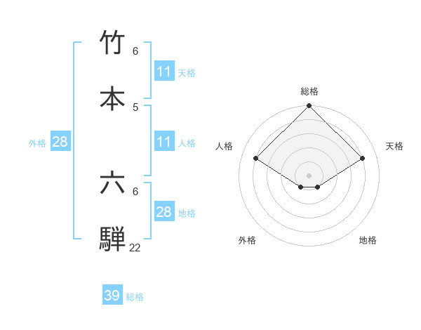 竹本 六騨さんを姓名の画数から五運を鑑定