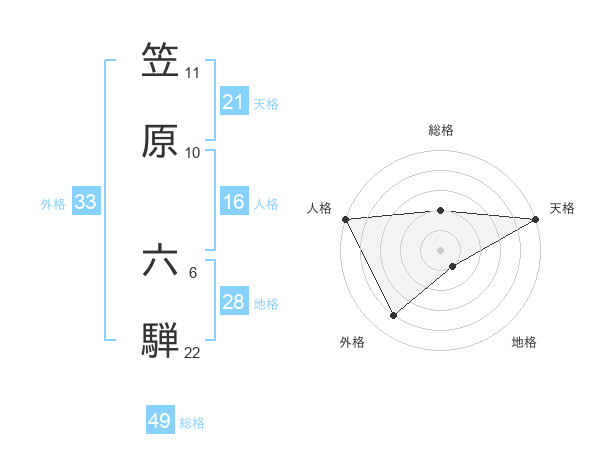 笠原 六騨さんを姓名の画数から五運を鑑定