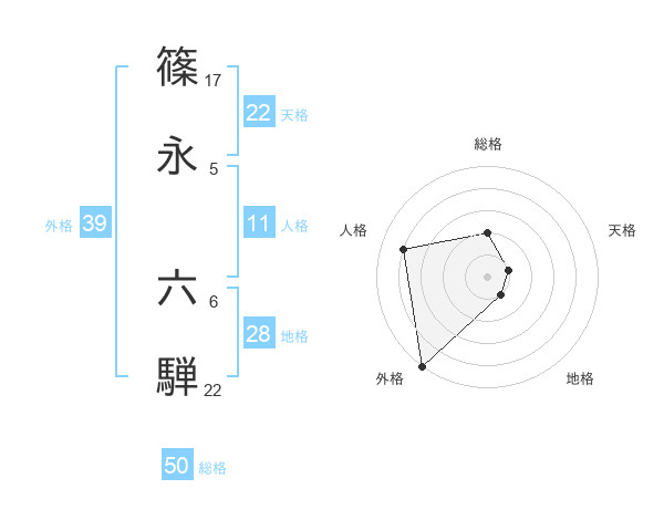 篠永 六騨さんの総格は50画の2点!