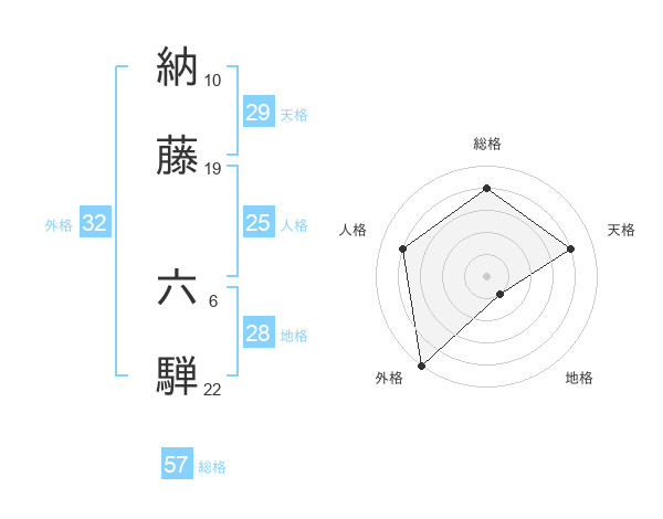 納藤 六騨さんを姓名の画数から五運を鑑定