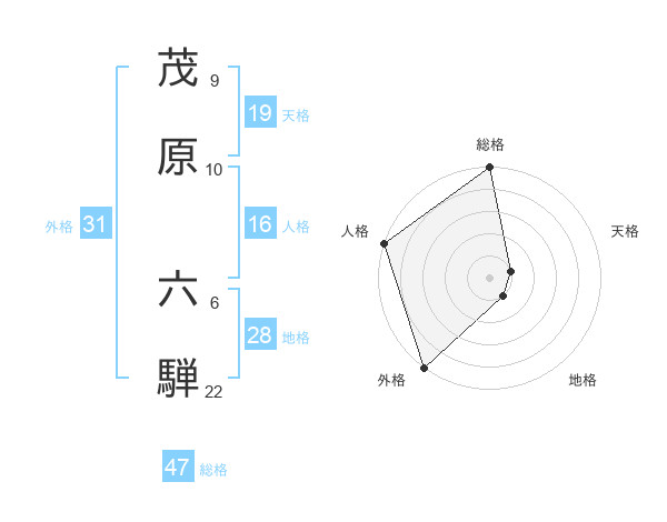 茂原 六騨さんの総格は47画の5点!