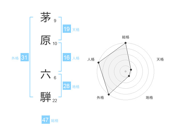 茅原 六騨さんの総格は47画の5点!