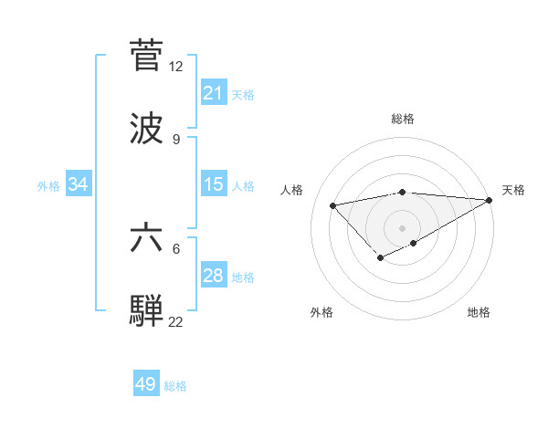 菅波 六騨さんの総格は49画の2点!