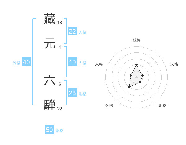 藏元 六騨さんを姓名の画数から五運を鑑定