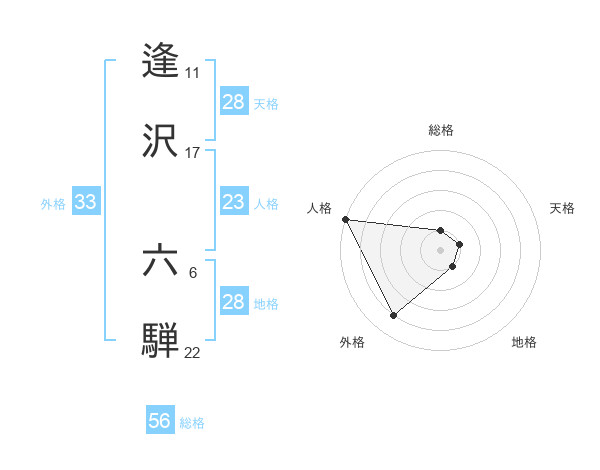 逢沢 六騨さんの外格は33画の4点!