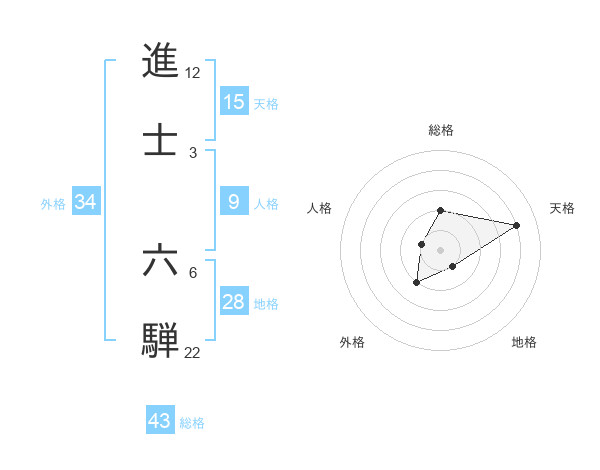 進士 六騨さんの天格は15画の4点!
