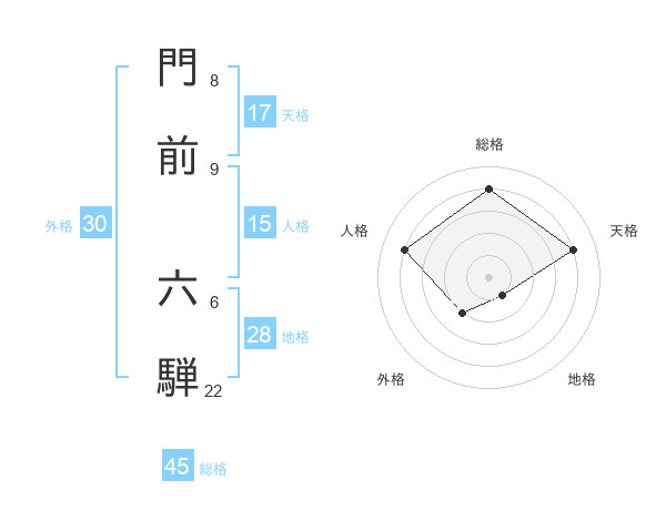 門前 六騨さんの総格は45画の4点!
