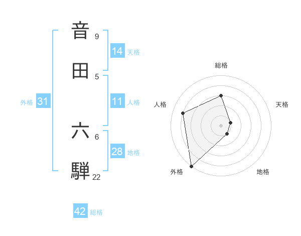 音田 六騨さんの外格は31画の5点!