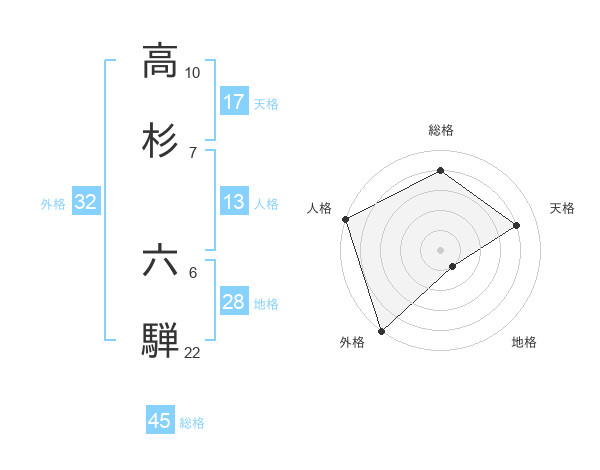 高杉 六騨さんの総格は45画の4点!