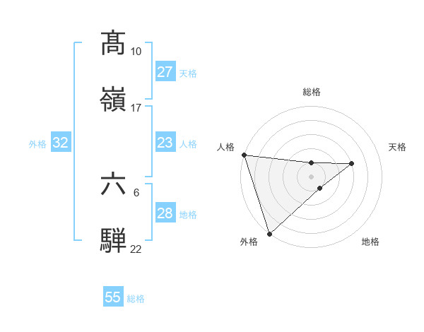 髙嶺 六騨さんを姓名の画数から五運を鑑定