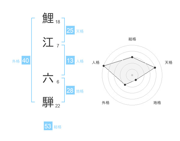鯉江 六騨さんの総格は53画の3点!