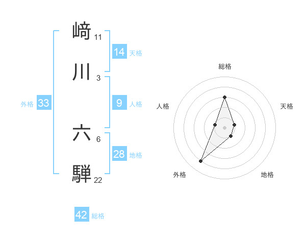 﨑川 六騨さんの総格は42画の3点!