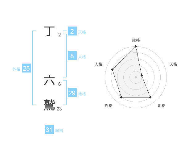 丁 六鷲さんの総格は31画の5点!