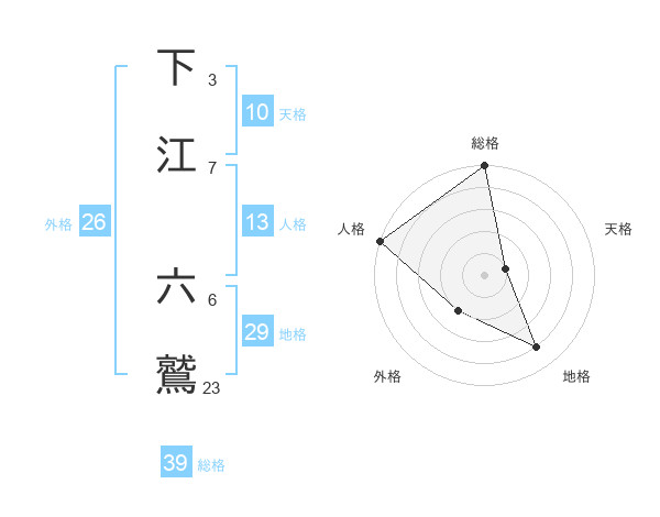 下江 六鷲さんの総格は39画の5点!
