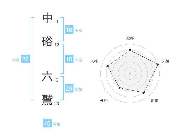 中硲 六鷲さんの総格は45画の4点!
