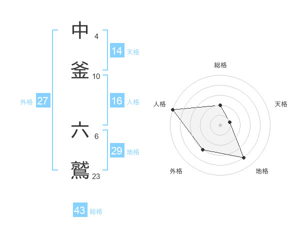 中釜 六鷲さんを姓名の画数から五運を鑑定