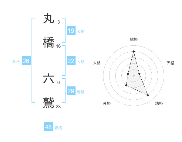 丸橋 六鷲さんを姓名の画数から五運を鑑定