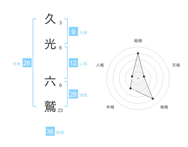 久光 六鷲さんの総格は38画の4点!
