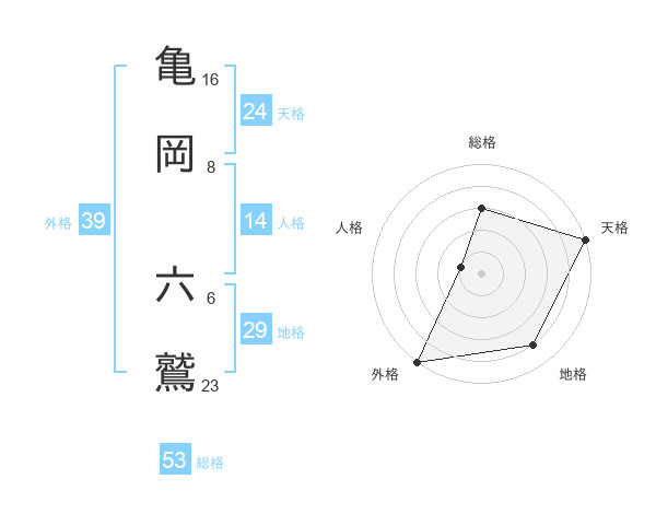 亀岡 六鷲さんの総格は53画の3点!