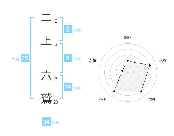 二上 六鷲さんを姓名の画数から五運を鑑定