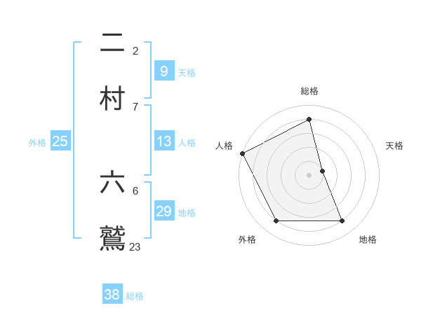 二村 六鷲さんの総格は38画の4点!