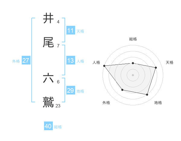 井尾 六鷲さんの総格は40画の2点!