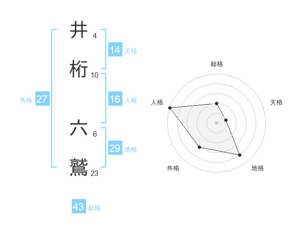 井桁 六鷲さんを姓名の画数から五運を鑑定