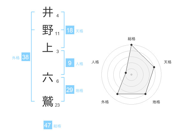 井野上 六鷲さんを姓名の画数から五運を鑑定