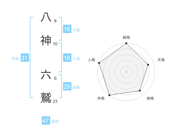 八神 六鷲さんの総格は47画の5点!