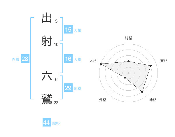 出射 六鷲さんを姓名の画数から五運を鑑定