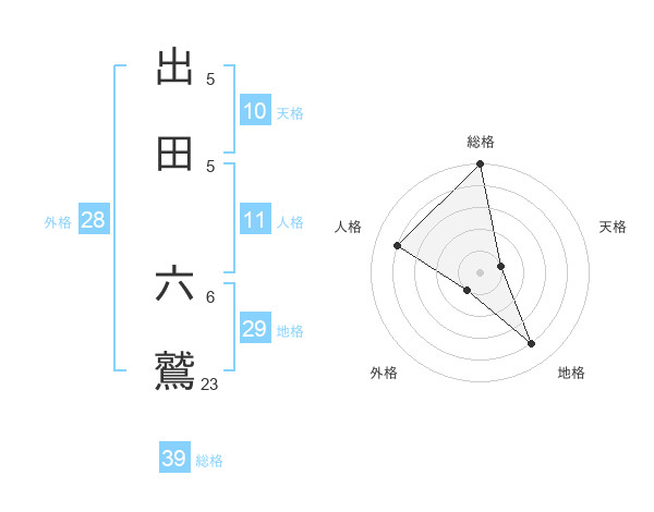 出田 六鷲さんの総格は39画の5点!