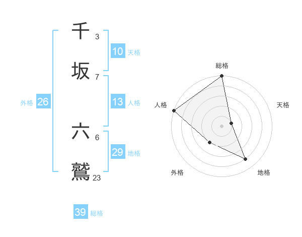 千坂 六鷲さんの総格は39画の5点!