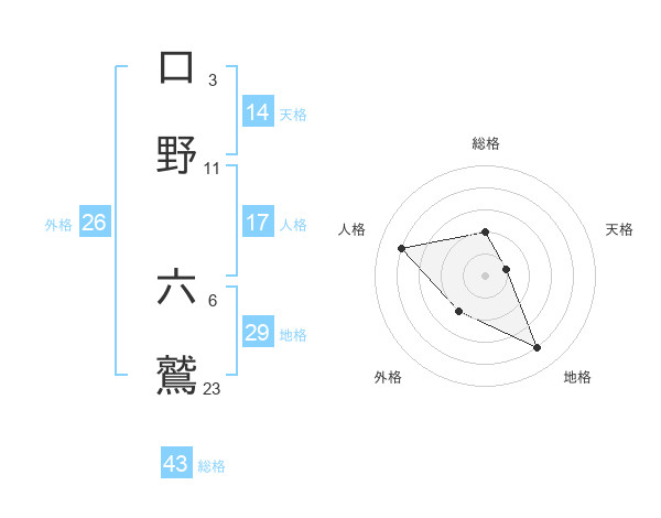 口野 六鷲さんの総格は43画の2点!