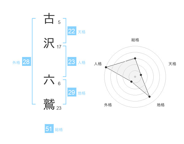 古沢 六鷲さんを姓名の画数から五運を鑑定