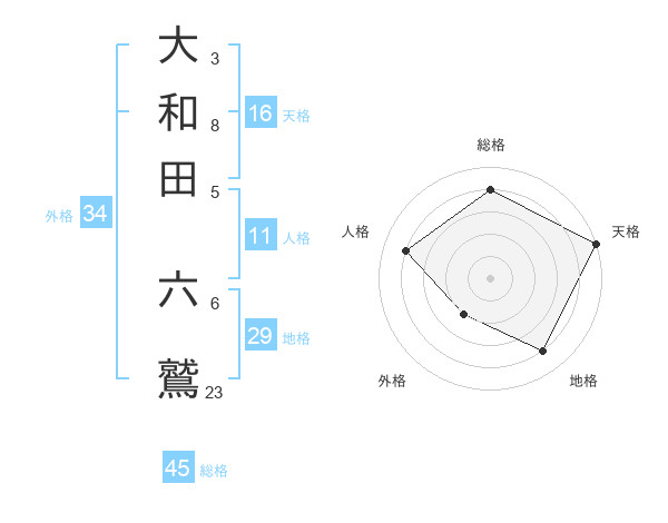 大和田 六鷲さんを姓名の画数から五運を鑑定