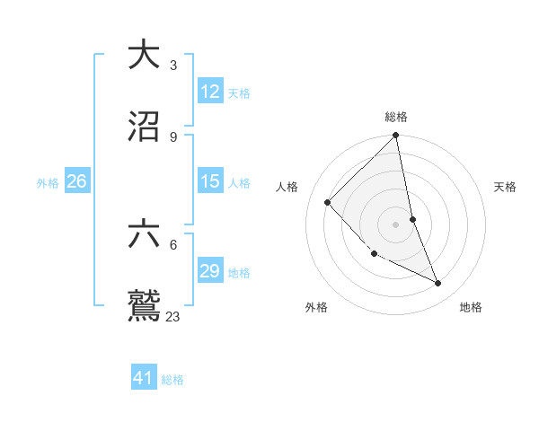 大沼 六鷲さんを姓名の画数から五運を鑑定
