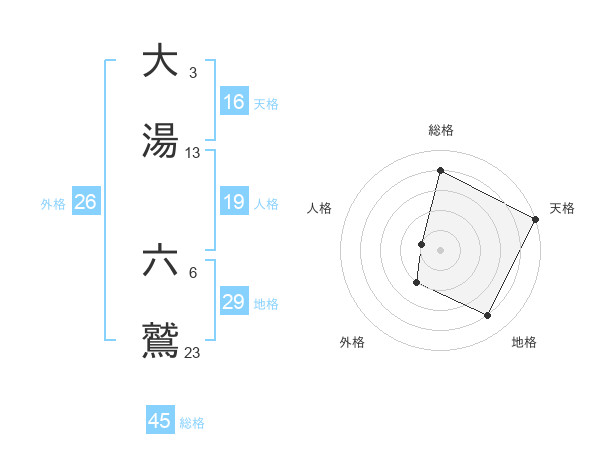 大湯 六鷲さんの地格は29画の4点!